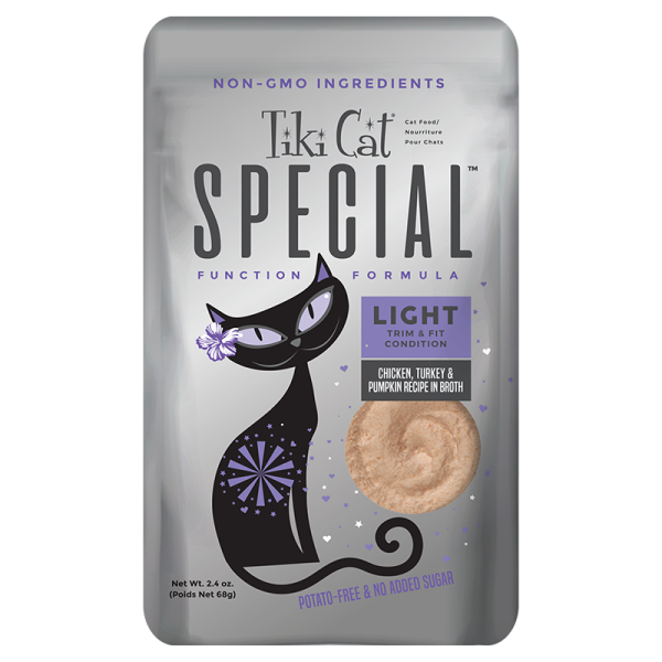 Tiki Cat Special Fussy is a silky mousse with special benefits. Help your cat maintain a healthy body condition with this delicious mousse, featuring fewer calories than all other Tiki Cat mousses. It's smooth and easy to eat. Tiki Cat Special provides high moisture for important supplemental hydration.