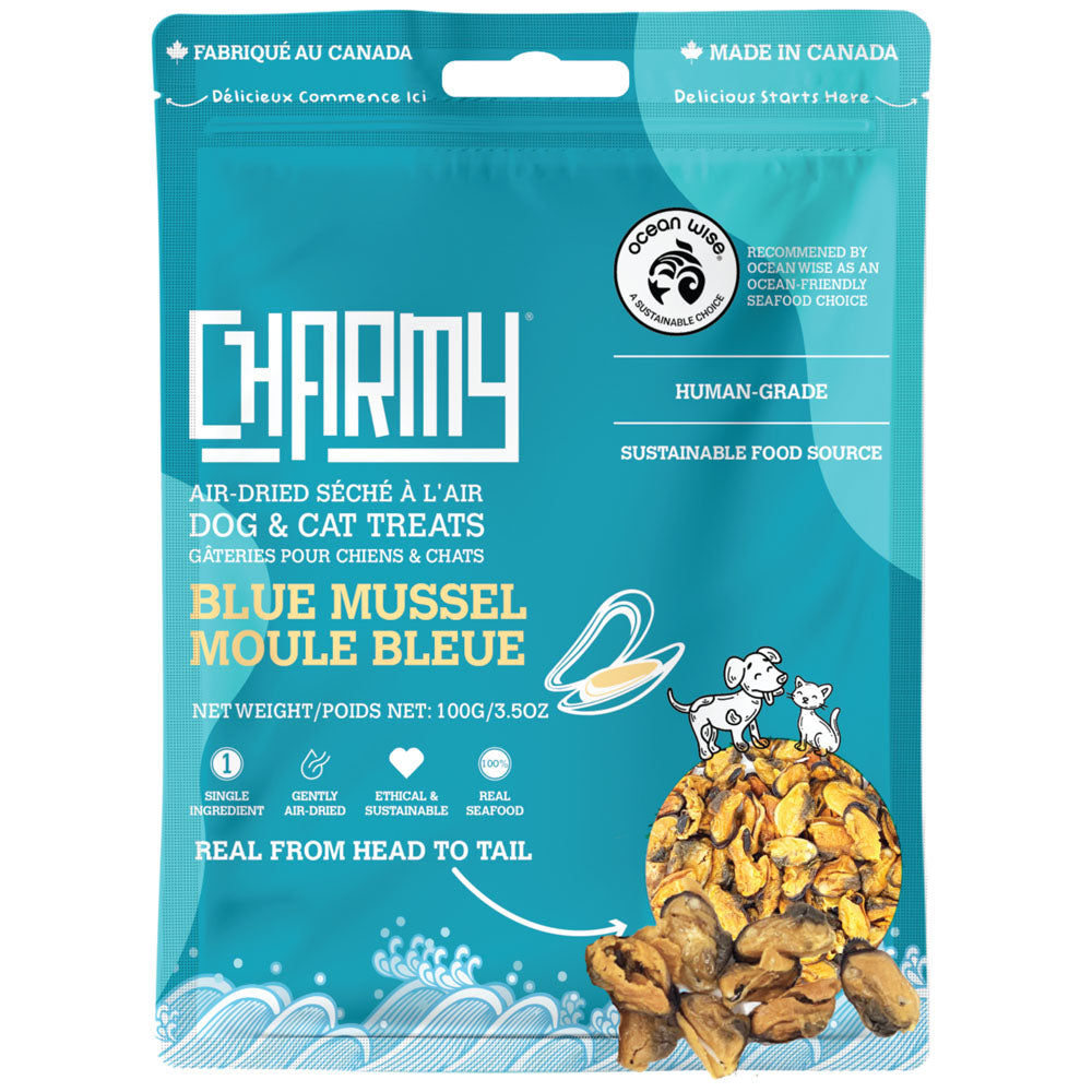 Blue mussel treats for dogs have a unique fishy taste and are sustainably sourced from Canadian fisheries.